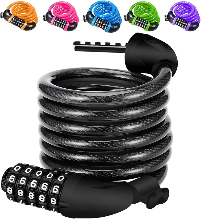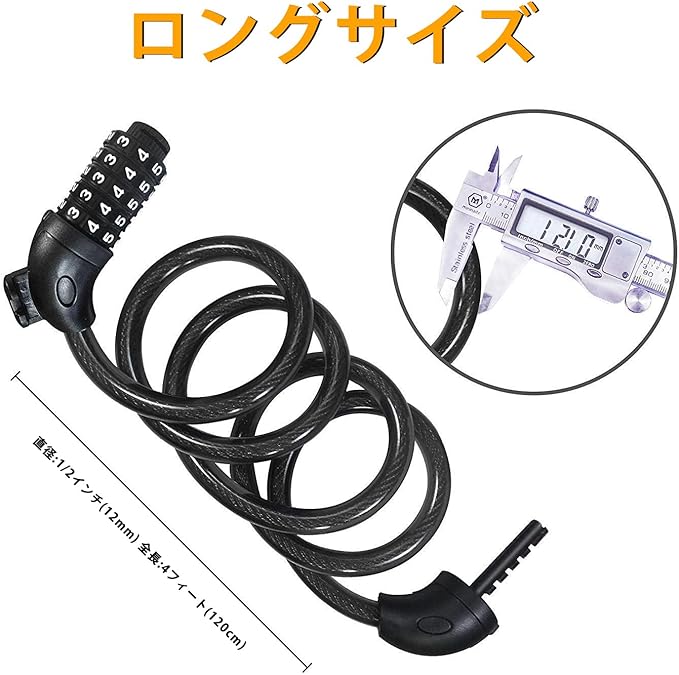 [長さ120センチの自転車用ロック 頑丈で信頼性が高い]自転車鍵ダイヤルの長さは120センチで、市場の伝統的なロックの長さより20センチ長く、多くの使用シーンに適しています。ロードバイク、マウンテンバイクなどの各種の小型交通機関でも、工具箱、グリル、栅、はしごでも……簡単にロックできます。鍵の長さが足りなくなる心配はもう要りません。