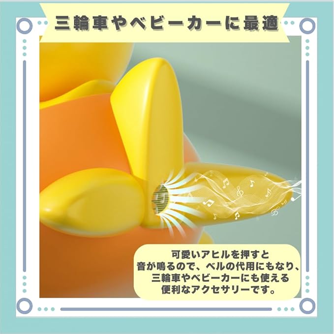 【三輪車やベビーカーに最適】可愛いアヒルを押すと音が鳴るので、ベルの代用にもなり、三輪車やベビーカーにも使える便利なアクセサリーです。