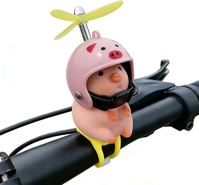 「装飾効果」自転車用アクセサリー、ハンドルにつけ、自転車を装飾します。自転車に乗る時、子豚ちゃんはそばにいるから、寂しくないです。その上、頭の上のタケコプターはクルクルして面白いです。つまらない時間も楽しくなります。