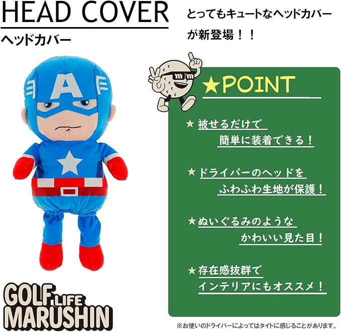 丸眞 ヘッドカバー マーベル キャプテン・アメリカ/ヘッドカバー ゴルフ 初心者 アップリケ刺繡 かわいい 2565000400