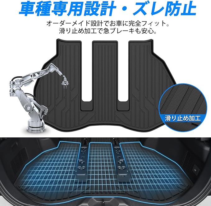 4.【車種専用設計】車種専用オーダーメイド設計により、お車に隙間なく完全フィットします。滑り防止加工を採用しているため、急ブレーキ時でもマットがずれず、安全性を確保します。さらに、車種専用設計でワンランク上の高級感を演出し、車内の雰囲気を手軽にアップグレードできます。