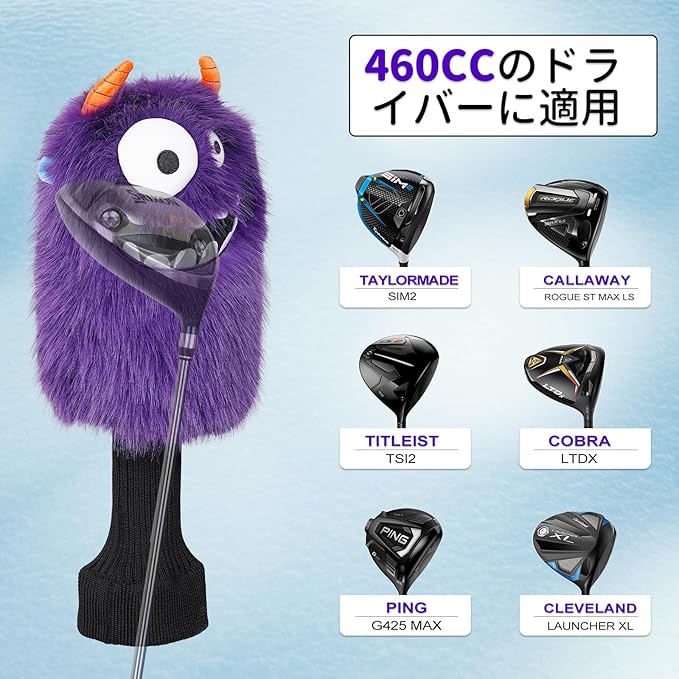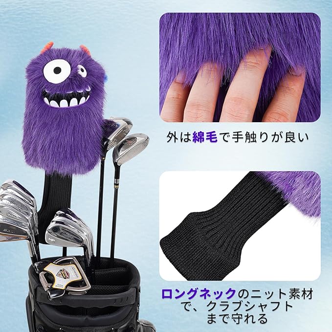 【モンスター】可愛いモンスターデザインとして作られたドライバーのヘッドカバー、ゴルフバッグに癒しさを加えます。家族や友へのプレゼントには最もです。
