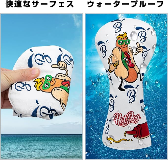 ゴルフクラブヘッドカバー ホットドッグ 刺繍 溢れウッドカバー ドライバー フェアウェイウッド ユーティリティ ハイブリッド用ヘッドカバー 番号タグ付き パターカバーマグネット開閉 ブレードパターカバー