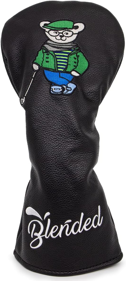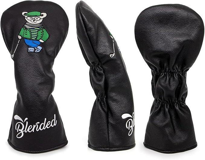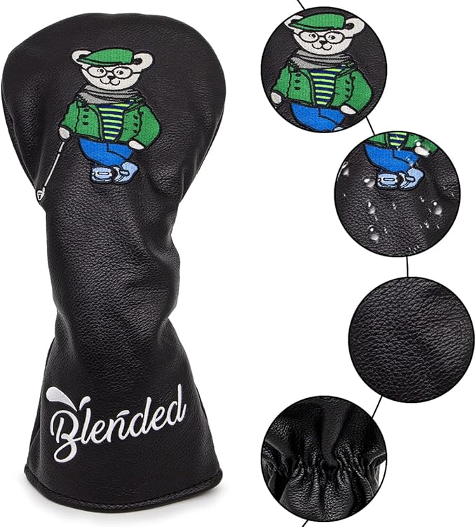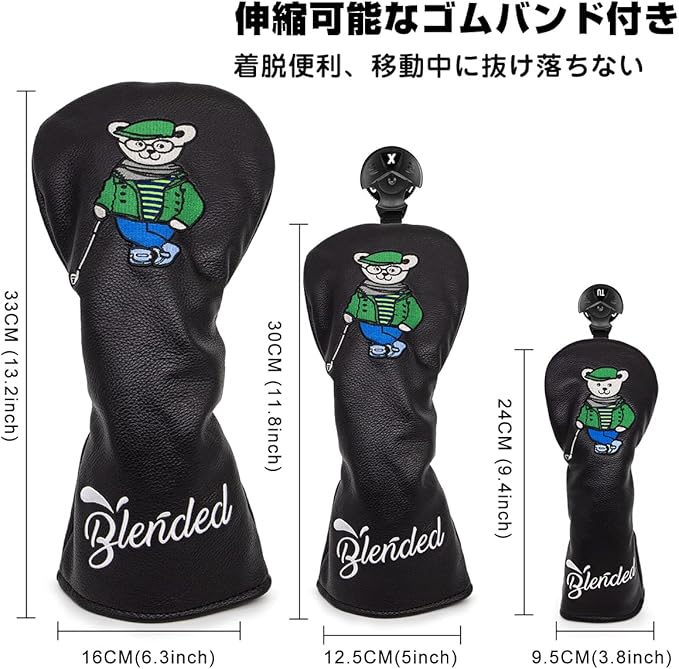 ゴルフクラブヘッドカバー ウッドカバー Bearゴルフ先生ドライバー フェアウェイウッド ユーティリティ ハイブリッド用ヘッドカバー 番号タグ付き ゴルフヘッドカバー PUレザー製 おしゃれ クマ刺繍 ブラック