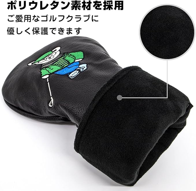 ゴルフクラブセットヘッドカバー,ゴルフクラブヘッドカバー PUレザー製ゴルフヘッドカバー ゴルフウッド用ヘッドカバー キャラクターヘッドカバー ドライバー(460cc対応) フェアウェイウッド ユーティリティ用ヘッドカバー 番号タグ&伸縮バンド付き