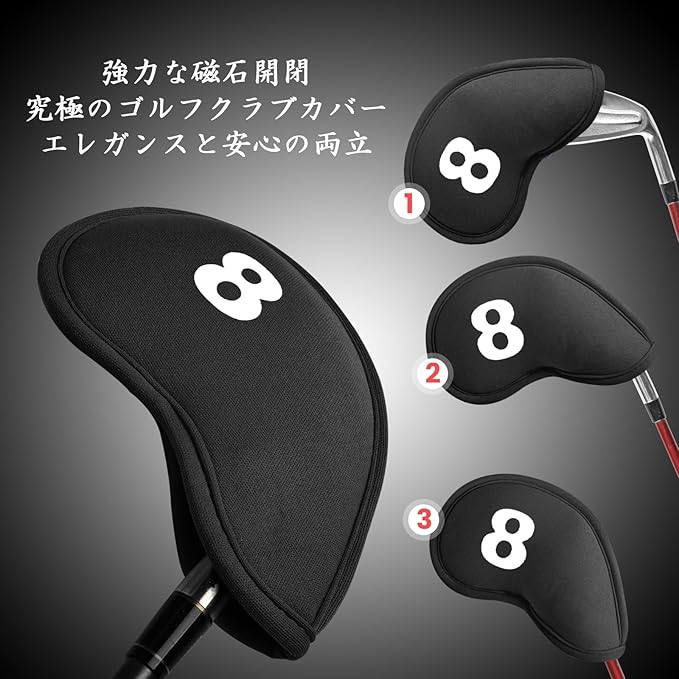 ゴルフアイアンカバー 11枚セット マグネット式開閉 ゴルフヘッドカバー ウェッジカバー ネオプレン素材 軽量 番号付き ヘッド保護カバー LT-018