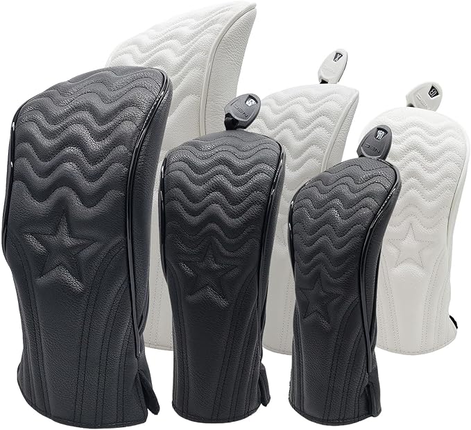 ゴルフ ヘッドカバードライバー カバー460㏄ 440㏄対応 ウッド用 カバー FW ユーティリティ用 カバー UT用 ヘッドカバー 高級pu革 単品 波 黒 白 変換タグ付き