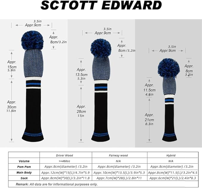 ゴルフ ヘッドカバー ニット セット 3枚セットセット、ゴルフクラブドライバーウッド(460 cc)*1フェアウェイウッド* 1とハイブリッドフェアウェイ*1(ブルースコットランドスタイル)