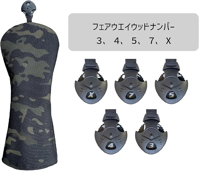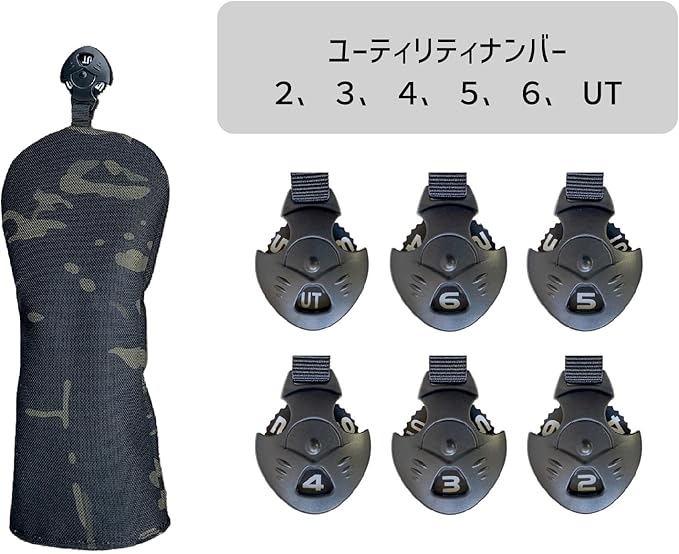 ゴルフ ヘッドカバー ドライバー ヘッドカバー ウッド カバー ユーティリティ ゴルフ UT カバー 番手タグ付き 防水仕様 ドライバー440cc 460cc 用 ナイロン迷彩黒