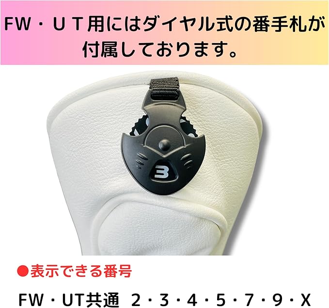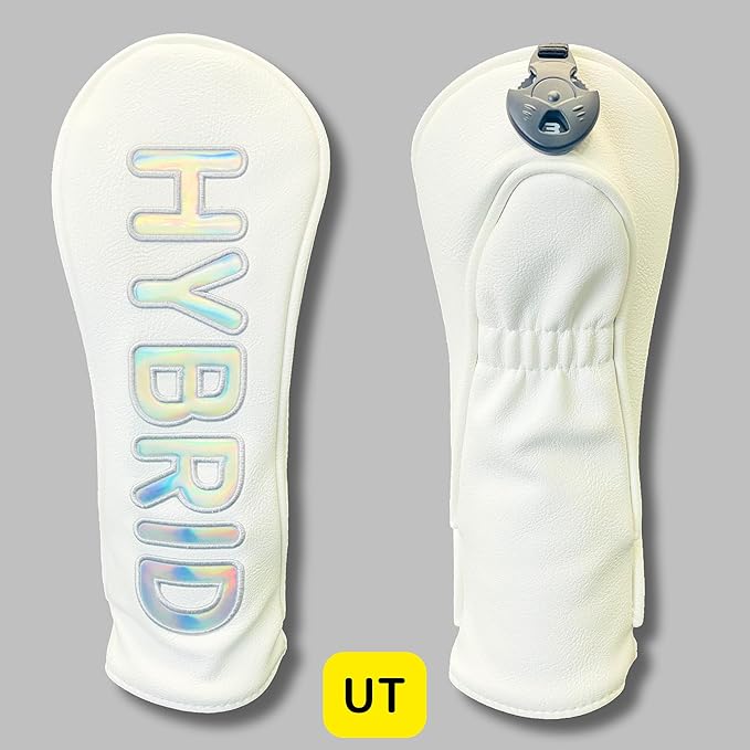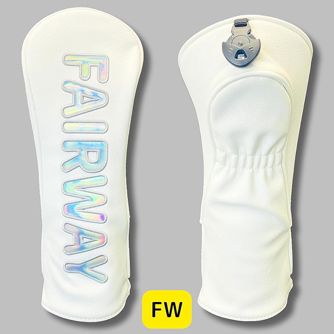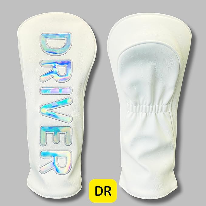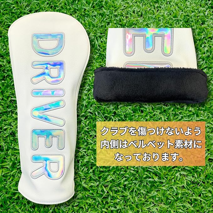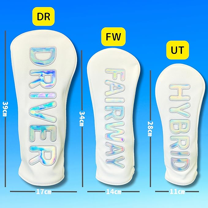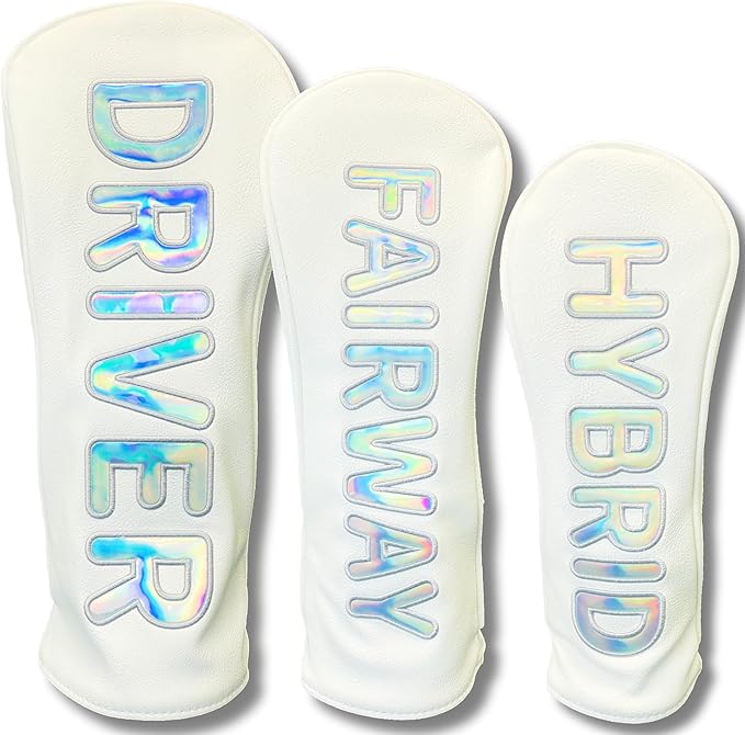 ✅プレミアムデザイン: ホログラムの輝きが美しい文字デザインで、高級感のあるホワイトカラーのヘッドカバー。ゴルフバッグをスタイリッシュに演出