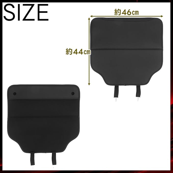 《設置方法》1:設置前にシートバックに付着している埃や油分などをタオルで拭き取ります。2:シートバックのポケットの上から被せて穴に引っ掛けます。3:本体に付いているフックをシートの底部に固定したら設置完了です。