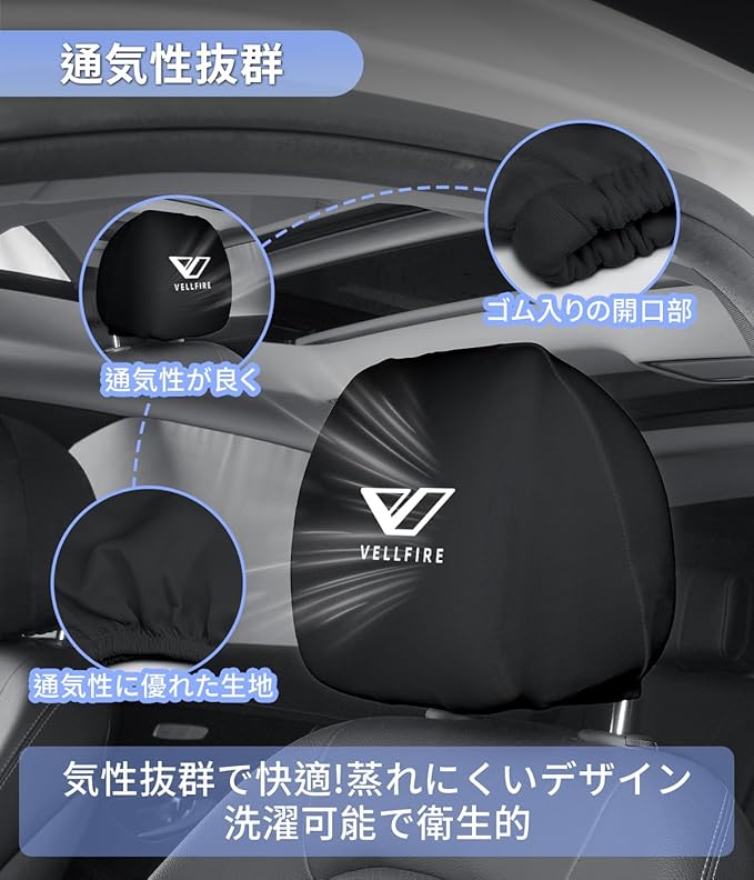 ヴェルファイア 適用 車 ヘッドレストカバー 汚れ防止 ヴェルファイア 20系 30系 40系 対応 通気性 被せるタイプ ヘッドレストバッドカバー 速乾生地 シミ防止 車用 防塵カバー 頭枕保護カバー カー 摩耗防げ 洗濯可 2枚セット(ヴェルファイア 適用)