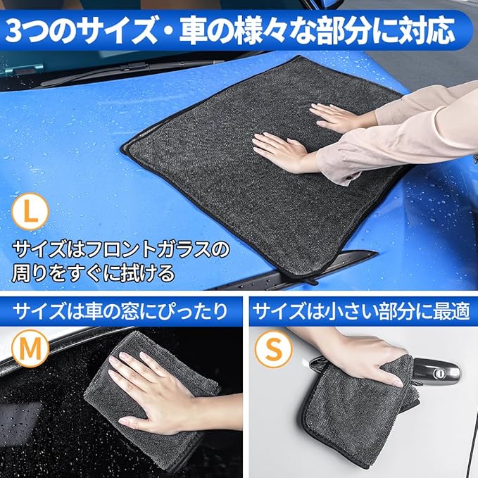 【製品詳細】この車用洗車タオルは、大 中 小の3つのサイズが揃っています。S:30x30cm、M:60x40cm、L:160x60cm。Lサイズはルーフやフロントガラスの広い範囲を素早く拭き取ることができ、Mサイズは様々な部分に対応して車の窓やタイヤなどをきれいに掃除できます。Sサイズはハンドルなどの小さな部分に最適で、車内のさまざまな箇所に対応しています。この専用ロゴが付いている洗車タオルは、実用的なアクセサリーです。適用車種:アルファード 20系 30系 40系 などのグレード
