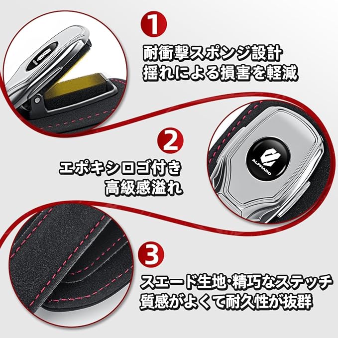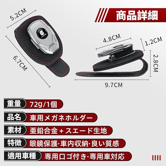【オシャレな見た目 専用ロゴ付き】この車載メガネホルダーは、アイアンマンの形を取り入れており、スタイリッシュなアイテムになっています。かっこよくて、高級感が溢れています。スエード生地を使用しており、質感が優れていて、エッジ部分には赤いステッチが施されているため、全体のデザインが一層引き立ち、見飽きることがありません。目を引くエポキシロゴデザインによって、メガネホルダーの高級感がさらに増しています。