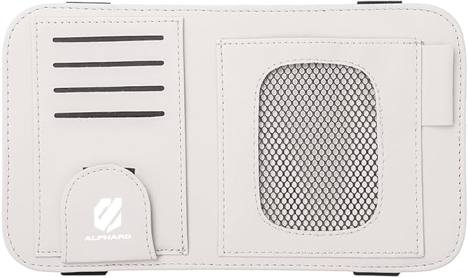 アルファード 対応 車用 収納 サンバイザーポケット ALPHARD サンバイザーバッグ PU 収納 サンバイザーケース メッシュ 収納サンバイザーホルダー小銭 領収証 車収納用品 メガネ 小物入れ カーポケット アクセサリー ベージュ