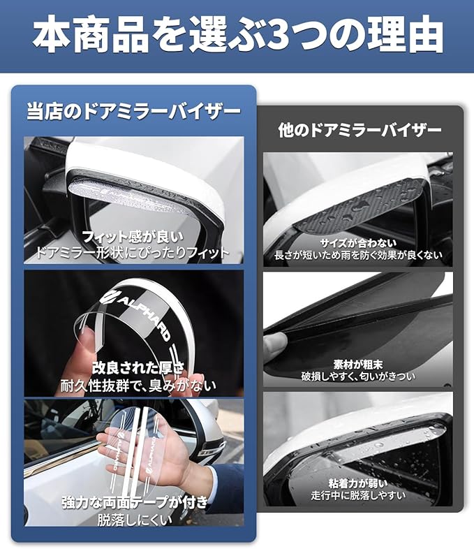 アルファード 専用 ドアミラーバイザー 車用 ALPHARD 専用ロゴ付き 雨よけ サイドミラーバイザー アルファード 20系 30系 40系 対応 撥水 サイドミラー 保護カバー 梅雨対策 水滴防止 視界確保 左右2枚セット 外装パーツ(透明,アルファード 専用)