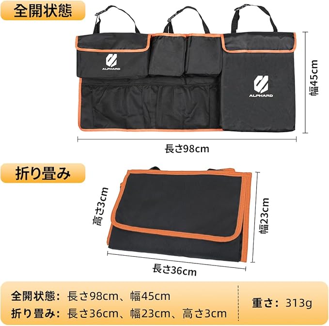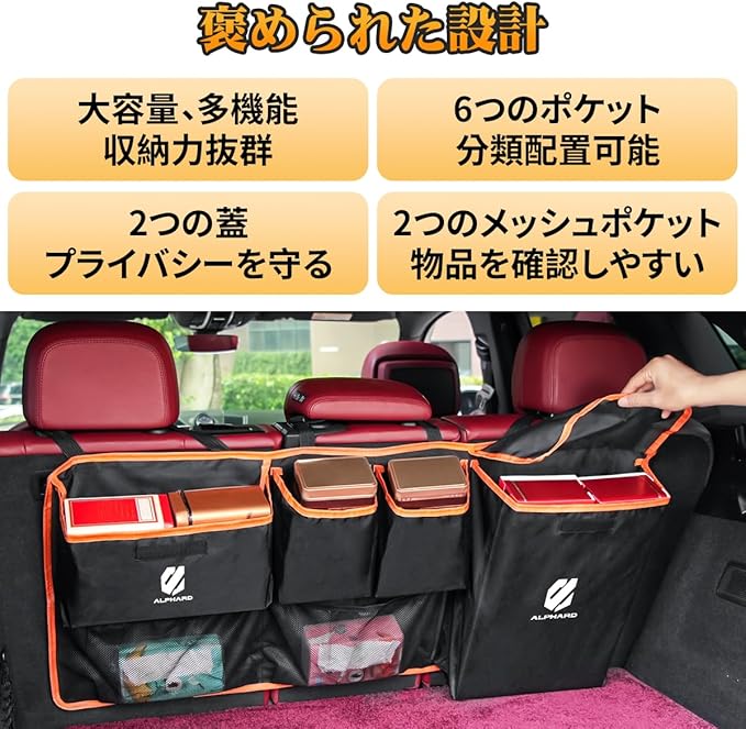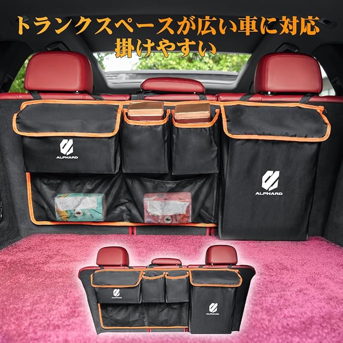 アルファード Alphard 専用トランク収納ポケット 車 収納バッグ カー シートバックポケット 車用 トランク収納袋 対応Alphard 40系 30系 20系 ポケット6つ 大容量 折り畳み可能 防水 キズ防止 持ち運びやすい アクセサリー