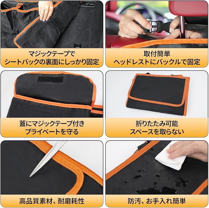 【超大容量】この車用シートバックポケットは非常に大きな容量を持っており、トランクや車内のあらゆる物を簡単に整理でき、車内のスペースを整然と保ち、物品の出し入れもスムーズです。6つの収納ポケットがあり、その中には2つのメッシュポケットが含まれているため、物品を簡単に確認できます。