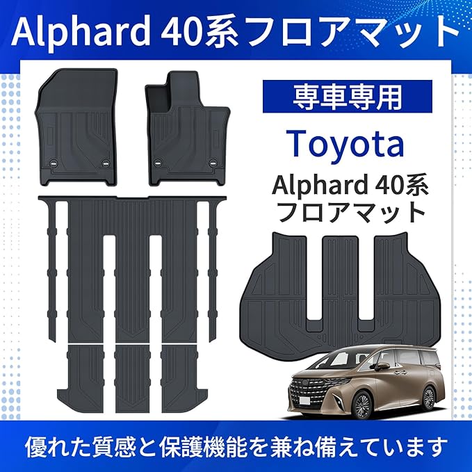 【適合車種】トヨタ 新型 アルファード40系/ ヴェルファイア40系 AAHH40W/AAHH45W/AGH40W/AGH45W/TAHA40W/TAHA45W [ガソリン/ハイブリッド共通] 年式:2023.6~(現行)セット内容:運転席x1、助手席x1、2列目x1、3列目x3、トランクマットx1(合計:7PCSセット)※購入する前、形状、年式とモデルを確認してください。
