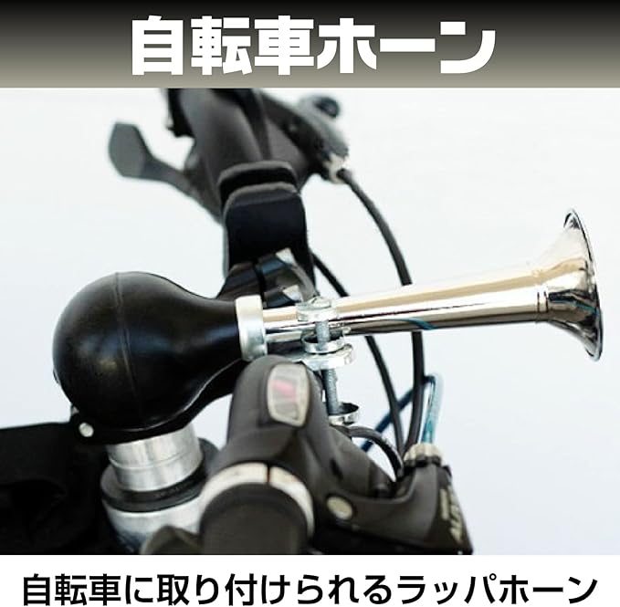 【商品内容】自転車のハンドルに取り付けられるラッパホーン(渦巻き型とストレート型)の2個セットです。 ラバー部分を押すだけで簡単に音が出るラッパは昔懐かしい「パフパフ」音色の違いを楽しめます。レトロなラッパホーン 応援グッズとしても使用できます。