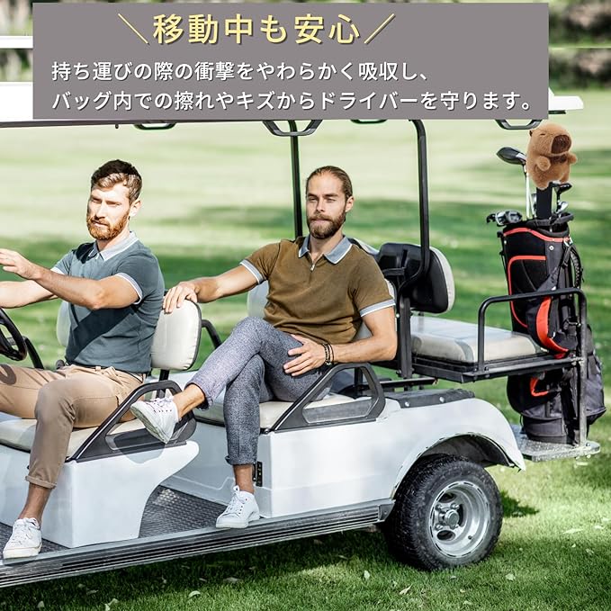 移動時や持ち運びの際の衝撃をやわらかく吸収し、バッグ内での擦れやキズから大切なドライバーを守ります。