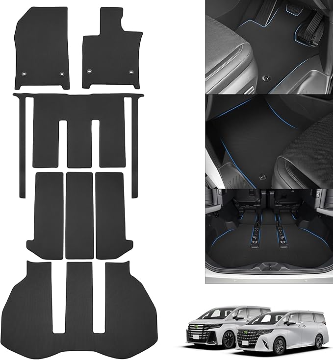 2.【セット内容】:フロアマット 2P、2列目用フロアマット 1P、3列目用フロアマット 3P、ラゲッジマット 1P。(合計:7PCSセット)【車種専用設計】:車種専用設計のため、隙間なくぴったりにフィットします。置くだけで簡単に装着できます。