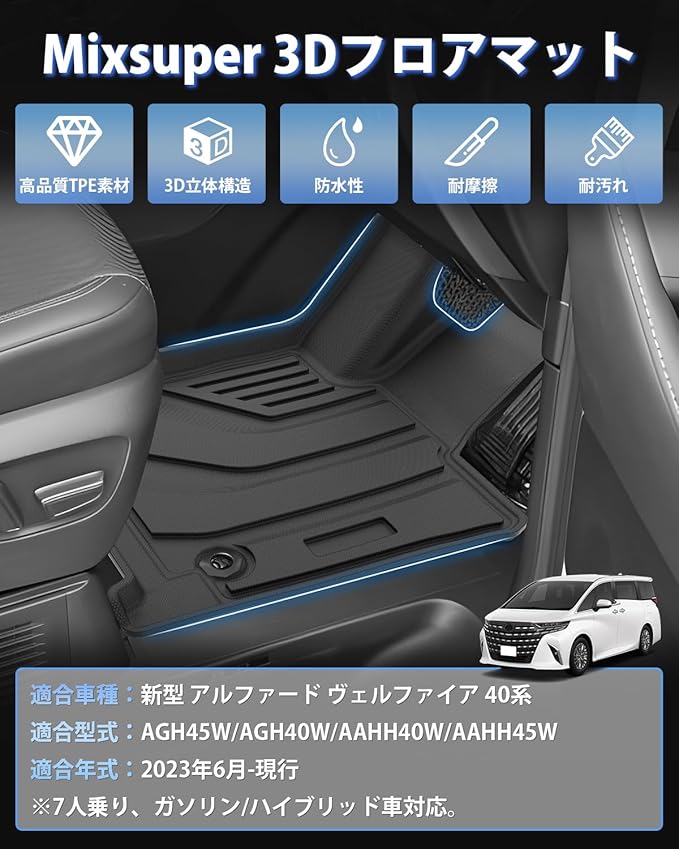 Mixsuper 新型 アルファード 40系 フロアマット ヴェルファイア 立体カーマット 防水 Alphard VELLFIRE 40 3Dフロアマット 7人乗り ガソリン ハイブリッド車 2023年6月~ アルファード カスタムパーツ TPE素材 車種専用設計 耐摩擦 耐汚れ 耐候性 難燃性 カー用品