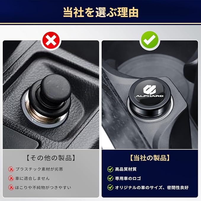 LUTU 新型アルファード 40系/30系/20系/10系 全シリーズ対応 シガーソケット キャップ 車用ライタープラグカバー 厚重感 高光沢仕上げ 雰囲気変わり 防塵 防水 滴胶加工 ワンタッチ設計 高耐久性 防触電設計 贅沢感 簡単取り付け 防衝撃シリコンリング付き 一個入り (アルファード)