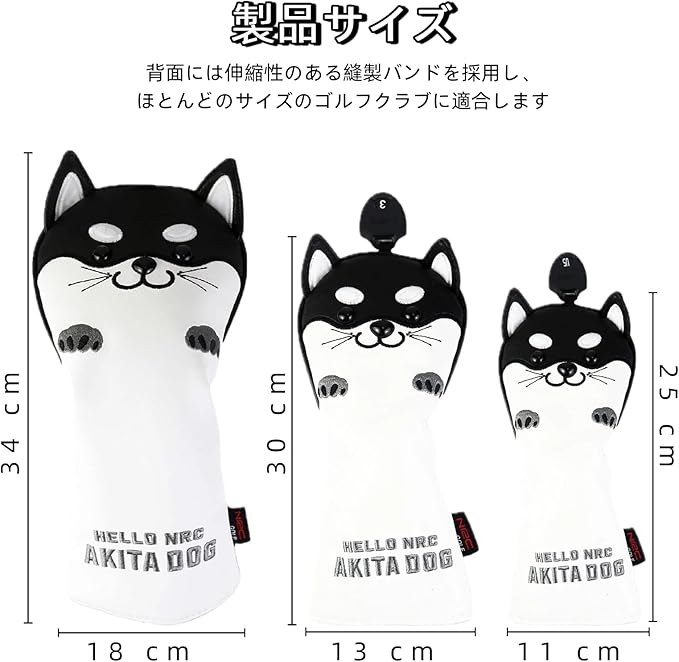 HELLO NRC ゴルフ ヘッドカバー 秋田犬/チルト ネコ デザイン かわいい 黄 フェアウェイウッド ユーティリティ カバー 防水 防錆 PU レザー ドライバー 440cc 460cc (DR/FW/UT) 調節可能 変換タグ付き 多機能 軽量 すべてのゴルフクラブ対応