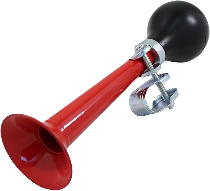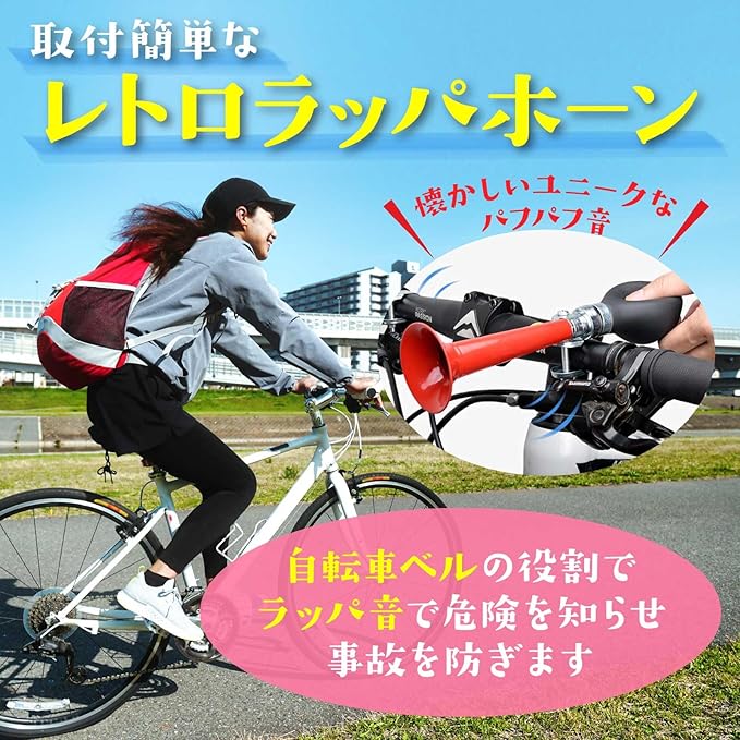 Funriche 自転車 ベル 自転車 ホーン ラッパ 音 警音器 レトロ ラッパホーン 応援 グッズ パフパフ音 取付簡単(渦巻&ストレート)(赤) (青)