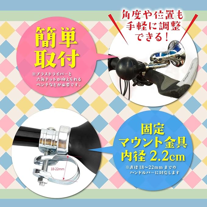 ✅ 【セット内容】:ストレートホーン、固定用金具セット。 重量:約80g 固定マウント金具内径2.2cm(直径22mmまでのハンドルバーに対応します)