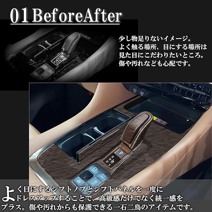 【究極のラグジュアリー感をアルファード&ヴェルファイアに!】新型アルファードとヴェルファイア40系専用の木目調シフトパネルカバー&シフトノブカバーセットで、内装を極上の豪華空間に。美しい木目調デザインが、ワンランク上のプレミアム感を実現。まるで高級ラウンジのような車内空間を演出します。
