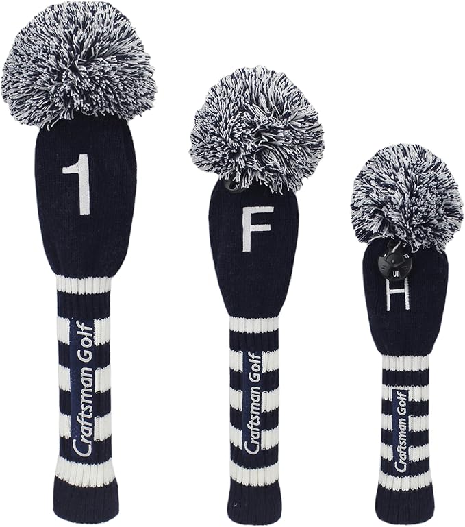 Craftsman(クラフトマン) ゴルフヘッドカバー 3点セット(1FH) クラブカバー ドライバー用・フェアウェイウッド用・ハイブリッド用 ニット ナンバータグ付け