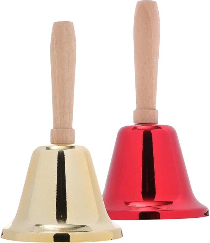 Alasum ハンドベル 2個セット 呼び鈴 クリスマス 抽選会 福引き イベント 盛り上げ 手振りベル 楽器 ベル 飲食店 受付 店舗 呼び出し パーティー 余興 木製ハンドル ゴールド レッド