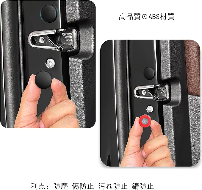 錆び防止:車のドアネジを錆から守り、清潔に保つことができます。また、錆びて見苦しいネジを隠すのにも役立ちます。 ホコリや汚れの侵入を防ぎます。さらに、雨水の侵入を防いでドアネジを腐食から保護します。