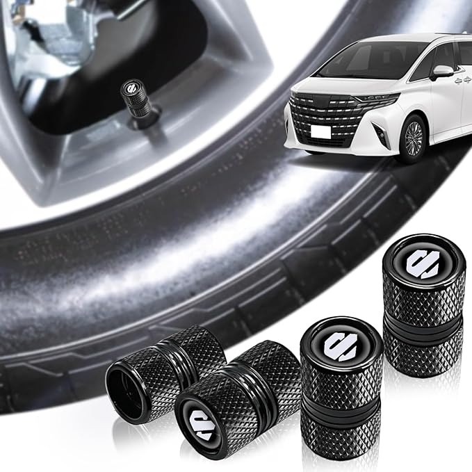 【アルファード 40系 専用】 エアバルブキャップ 専用ロゴ入り アルミ合金製 17x11mm シリコン密封リングで気密性 防錆 防塵 4個セット 防塵 防錆 防漏気 車 バイク用 取り付け簡単 タイヤ バルブキャップ (ブラック)