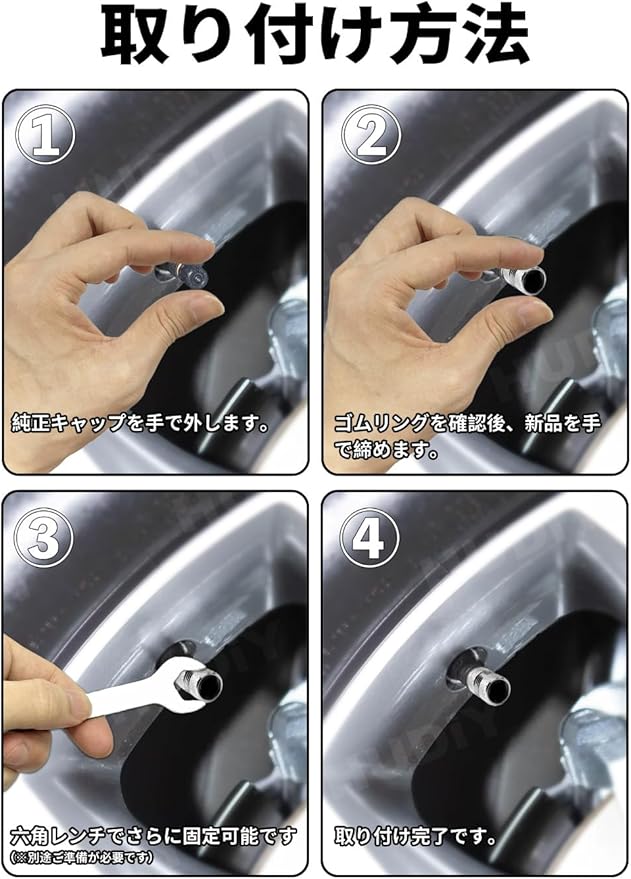 【使い方は簡単】純正品に近いシリンダー(円柱)形状を採用。すっきりとした見た目でありながら、手で簡単に締め付け可能。シリコンリングによる摩擦力で緩みを防止し、走行中の振動による紛失リスクを低減します。工具が不要なため、メンテナンスも簡単です。