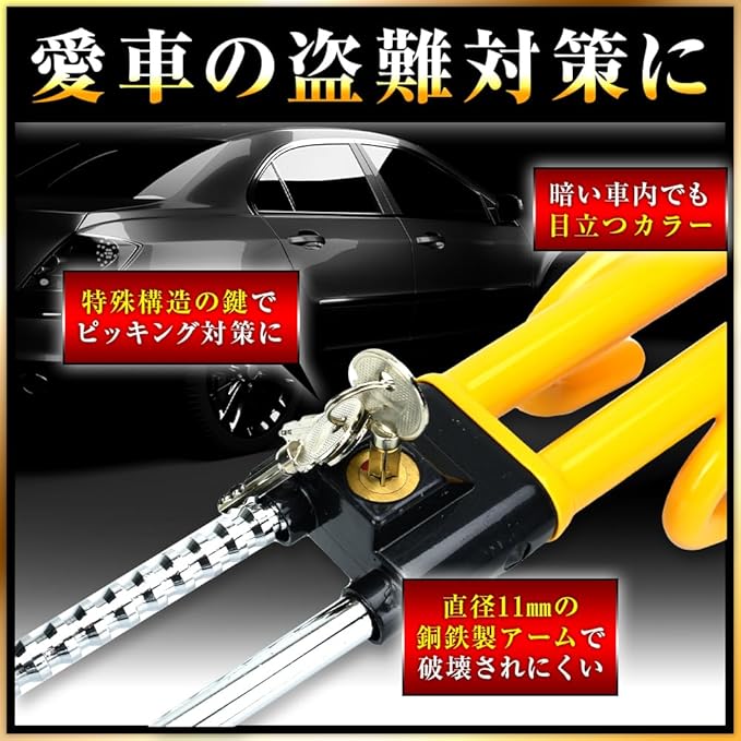 【セット内容】車用ハンドルロック 1点 鍵 2本 【サイズ(約)】全長:48cm~67cm 【カラー】イエロー・レッド ※お好きなカラーをお選びいただけます。【材質】鉄