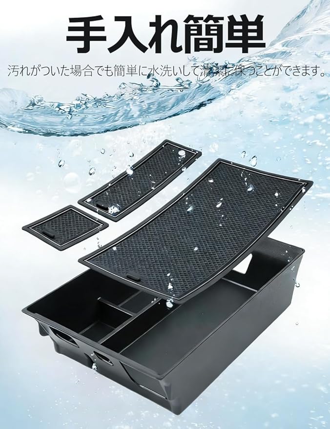 【優れた素材・お手入れ簡単】このコンソールボックスは環境に優しいABS素材を使用し、無毒・無臭で劣化に強く、優れた耐久性を持っています。付属のラバーマットはPVCゴム製で、防塵・防水機能があり、物の移動を防ぎます。汚れた場合でも水で簡単に洗え、繰り返し使用できます。