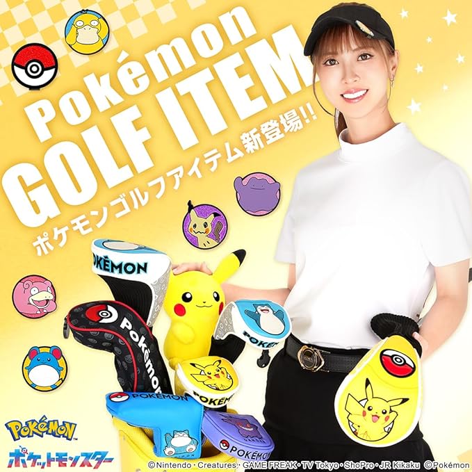 ポケモンゴルフグッズ新商品! ピカチュウとカビゴンのソックスタイプヘッドカバーが仲間入り! それぞれピカチュウとカビゴンの刺繍とモンスターボールのデザインをボディに落とし込んだヘッドカバー。 ソックスタイプだから使い勝手は抜群! 男性ゴルファーにも女性ゴルファーにも使いやすいデザインに仕上がっています。 みんなの注目を集めるかわいさでゴルフが楽しくなること、まちがいなし!