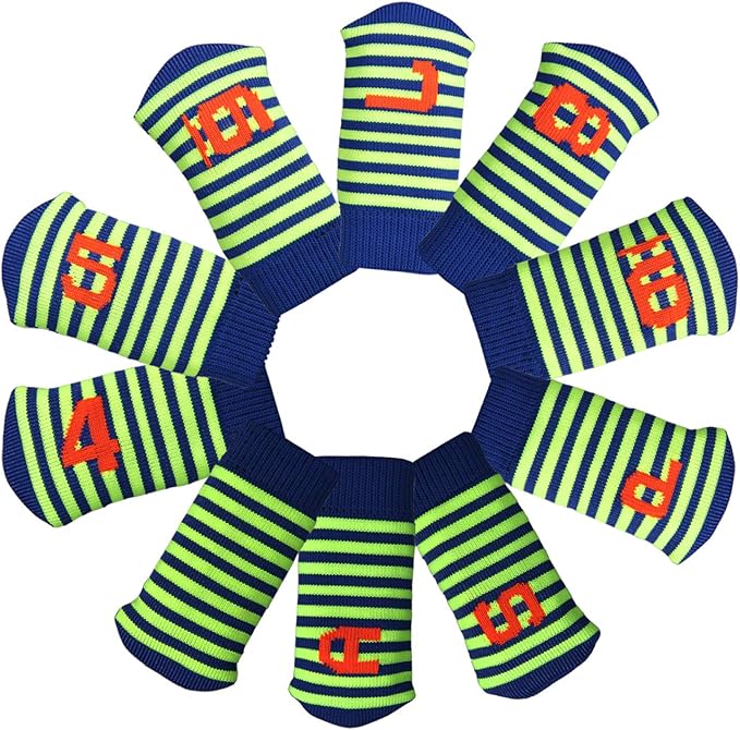 ゴルフ アイアン用 ヘッドカバー 10枚セット ストライプ模様 アイアンヘッドカバー番手付き