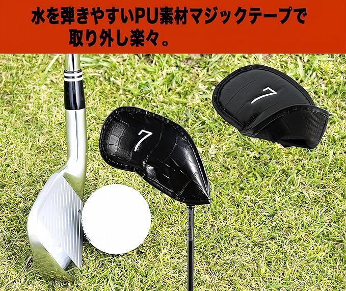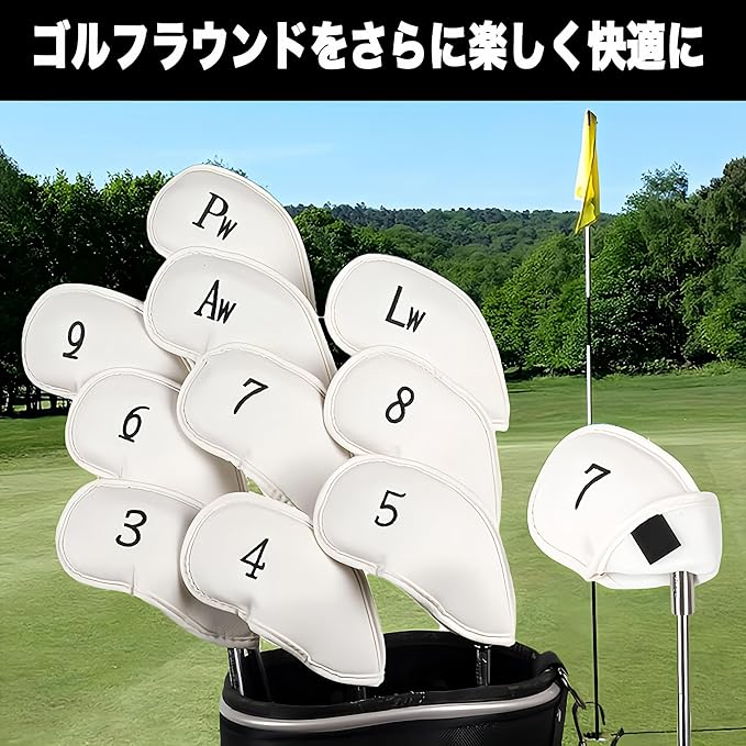 ゴルフ アイアンカバー ヘッドカバー 12点セット PUレザー 番手表示 薄型 収納便利