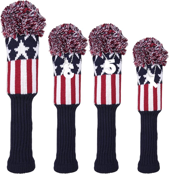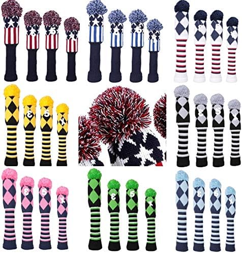ゴルフカバー ヘッドカバー 4点セット ドライバー/ウッド FW 2点/ハイブリッド UT用カバー ニット製 ペンダント付け