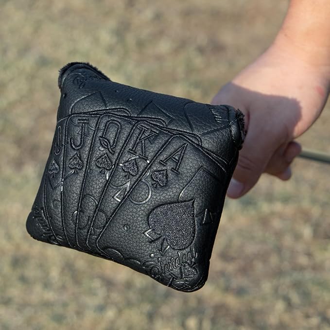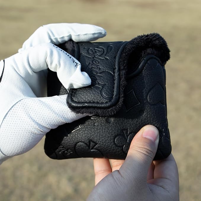 ゴルフパターカバー パターヘッドカバー ブレードパターカバー ゴルフクラブヘッドカバー ゴルフヘッドカバー PUレザー製 刺繍 ブラック ゴルフパターヘッドカバー マグネット付き、全ブランドに適合