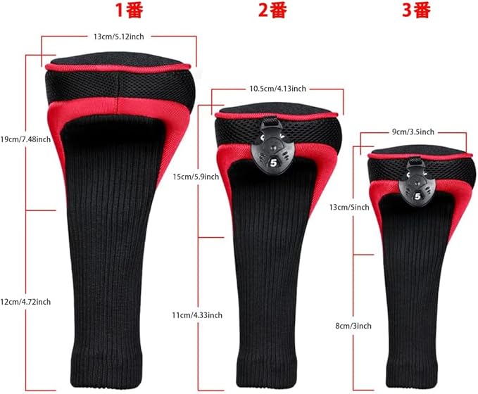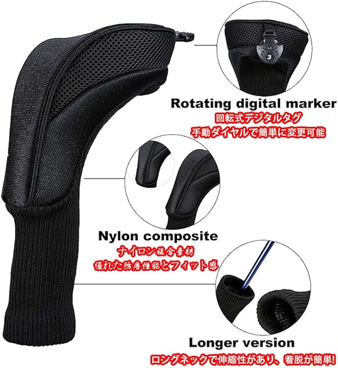 クラブヘッドカバー ロングネックタイプナイロン3点セット クラブウッドカバー ドライバー用 フェアウェイウッド用 ユーティリティ用 番号タグ付き 軽量 耐摩耗 長持ち メンズ・レディース兼用