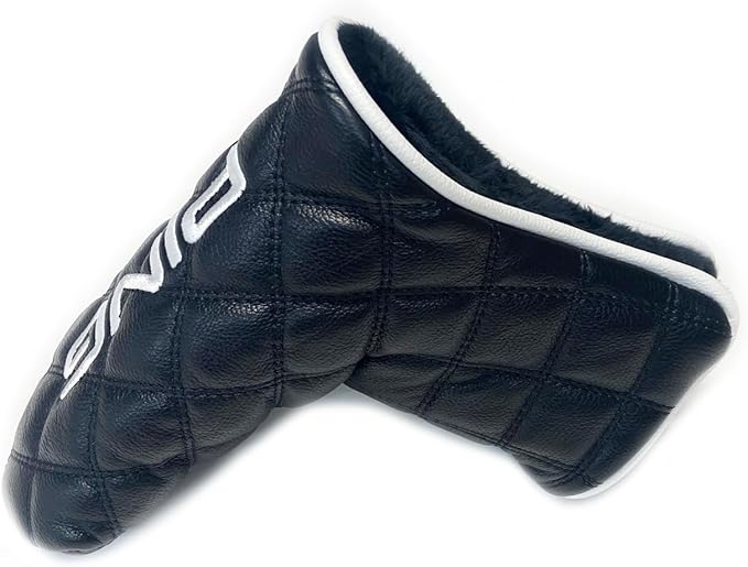 Ping ユニバーサルキルトプレミアムレザーブラックパターヘッドカバー、マグネット開閉。