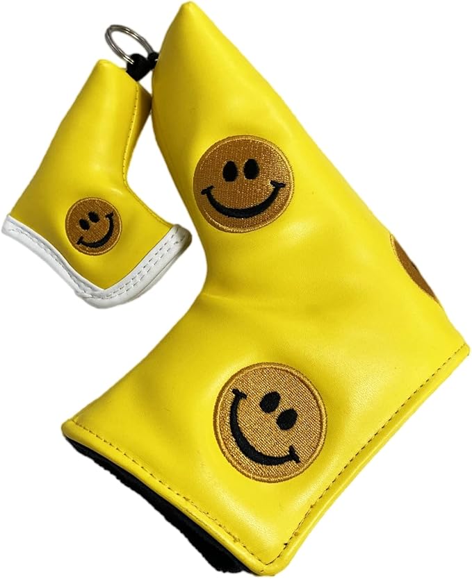 ゴルフ カバー パターカバー ピンタイプ カバー ゴルフヘッドカバー マグネット キーリング付き スマイル