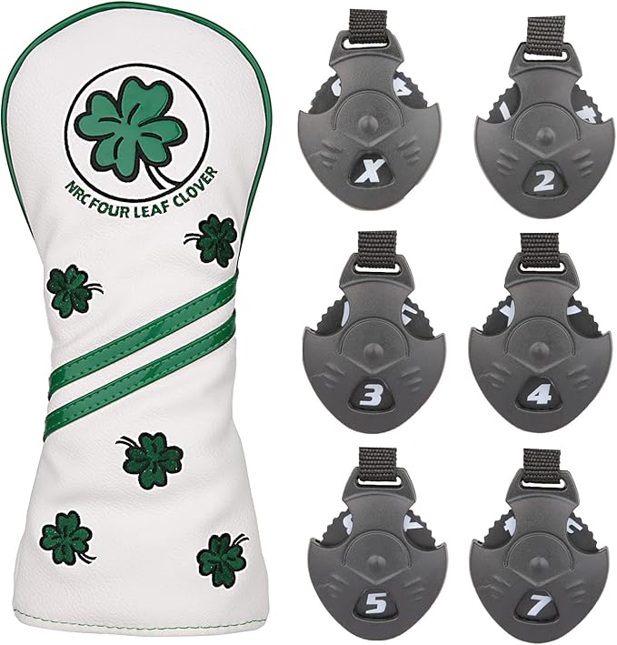 ゴルフクラブセットヘッドカバー ゴルフヘッドカバー3点セット/ ドライバーDR用用カバー/ウッド用 FW/ユーティリティ用 UT 四葉のクローバー 白 単品1個販売/3点セット ホワイト