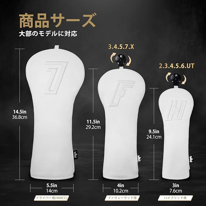 ゴルフクラブヘッドカバー ドライバー用/フェアウェイウッド用/ユーティリティー用 単品/セット シンプルな設計 白い 合成皮革 立体文字
