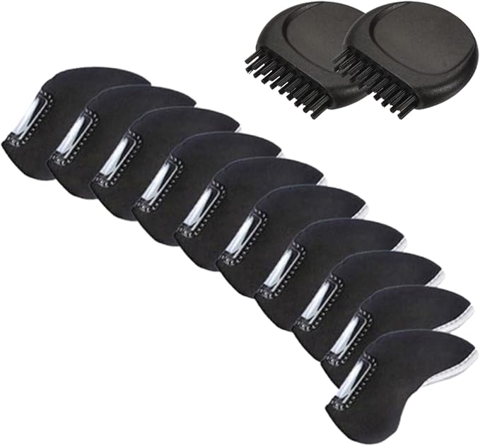 ゴルフクラブ アイアン ヘッド カバー 番手見える 窓付 10個セット ブラック ゴルフクラブブラシ2個付き
